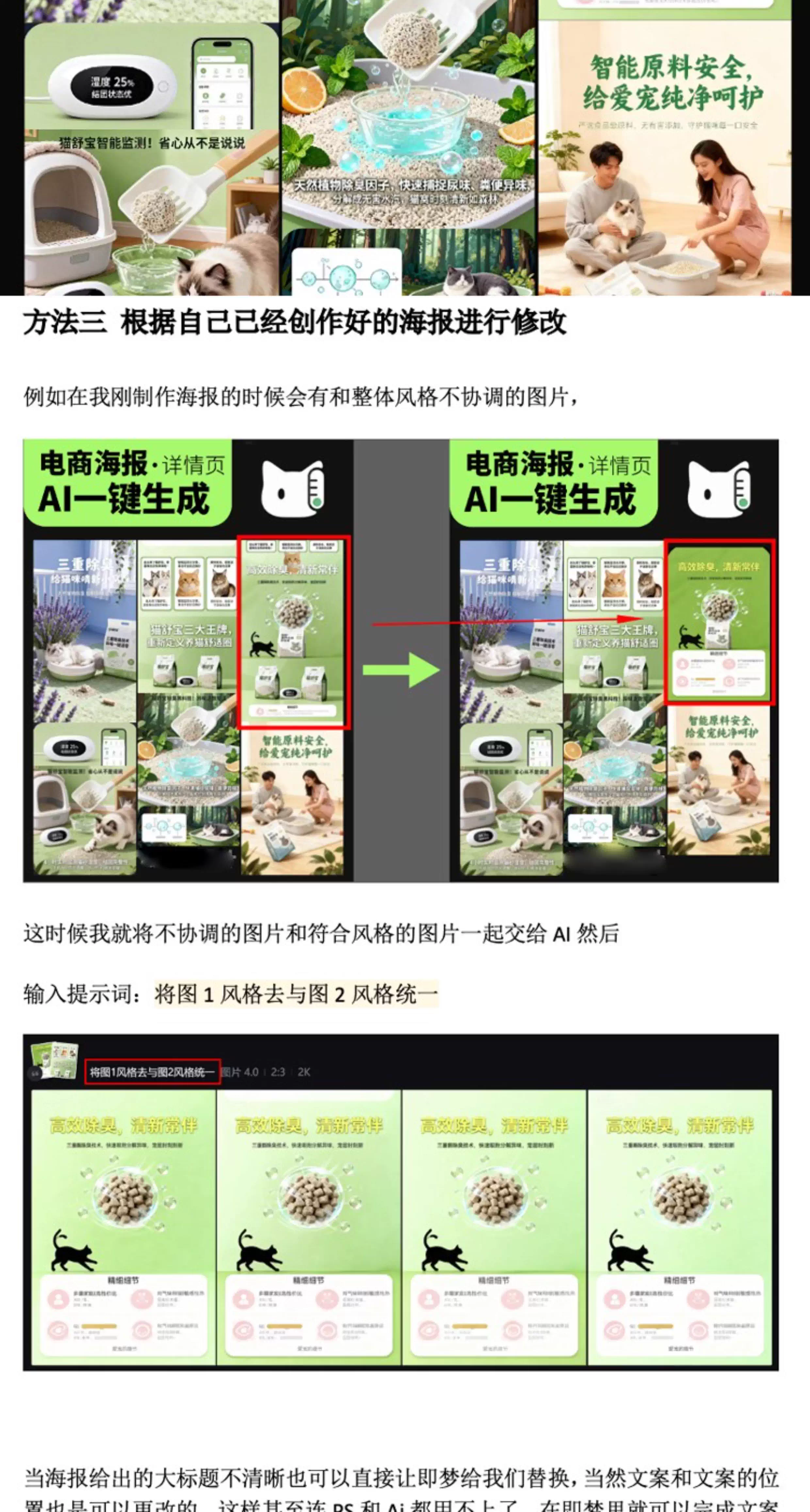 ● 输入商品关键词+风格指令,AI自动生成: